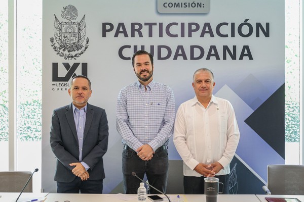 En sesión de trabajo de la Comisión de Participación de Ciudadana en la LXI Legislatura del estado, presidida por el diputado Mauricio Cárdenas Palacios, e integrada por los legisladores Luis Gerardo Angeles Herrera, secretario, y Sinuhé Arturo Piedragil Ortiz, aprobaron el proyecto de dictamen de la Iniciativa de Decreto por el que se declara y se inscribe con letras doradas la leyenda “2025, Año del Bicentenario de la Constitución Política del Estado de Querétaro de 1825”.