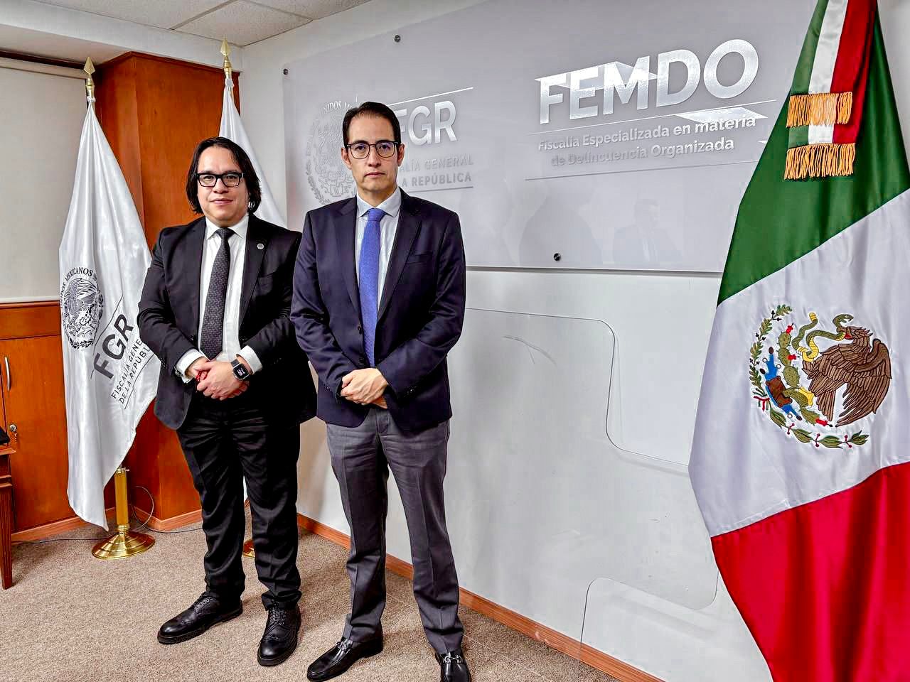 El Fiscal General, Víctor Antonio de Jesús Hernández, sostuvo una reunión de trabajo con César Oliveros Aparicio, titular de la Fiscalía Especializada en Materia de Delincuencia Organizada (FEMDO) de la Fiscalía General de la República.