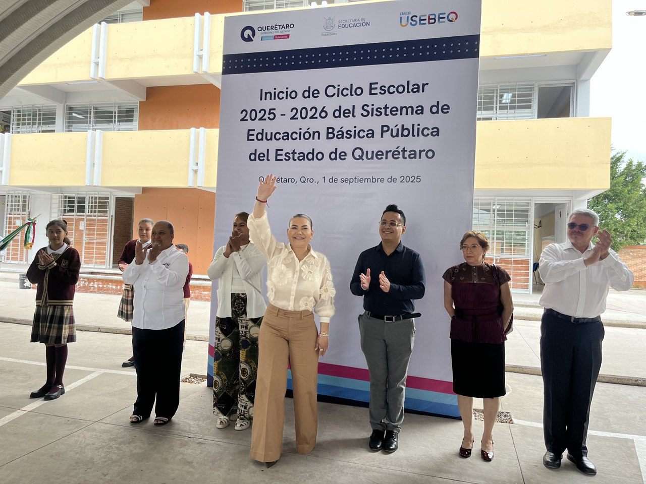 Acompañada del presidente municipal de Corregidora, Chepe Guerrero, la titular de la USEBEQ, dio a conocer que hasta el momento el inicio de labores escolares ha transcurrido sin contratiempos. La autoridad educativa realiza recorridos de supervisión por las escuelas, atentos al arranque de las actividades del primer día de clases.